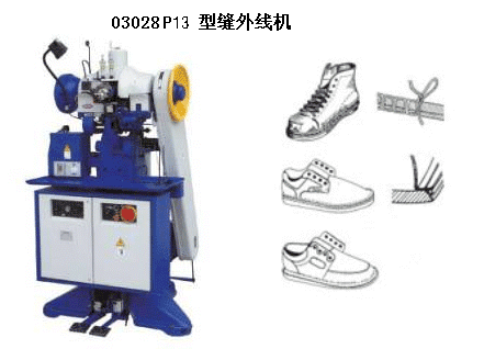 P1:适合于将腰窝部位的鞋帮的帮脚固定在内底上。机器用钢丝自己制作的钉书钉形状的卡箍固定鞋帮。可以加工不同楦型、尺码、后跟及帮高的男鞋、女鞋和童鞋。特别适合于加工特殊的高跟鞋。 P3:机器用以将
