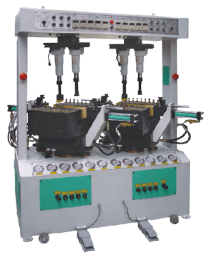 崭新性能的完美结合,精心研发优良装置之压底机、充份表现优异及卓越性能。 本机采用全油压设计、压力大、贴合牢固。 鞋前帮的级别可自动调节。 女鞋可贴合任意高度的鞋跟。 男鞋可贴合任意尺寸。