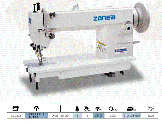 GC0302中厚料平缝机系列 公司名称:江苏省新沂市中新缝制设备有限公司简介:江苏省新沂市中新缝制设备有限公司(原新沂工业缝纫机厂)有二十多年生产工业缝纫机的历史,是原轻工部定点生产企业,上工股份