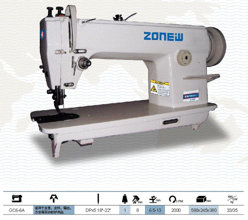 GC6-6A中厚料(大旋梭)平缝机系列 公司名称:江苏省新沂市中新缝制设备有限公司简介:江苏省新沂市中新缝制设备有限公司(原新沂工业缝纫机厂)有二十多年生产工业缝纫机的历史,是原轻工部定点生产企业...