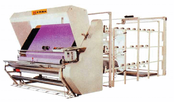 用途:喷水织布机下来的坯布堆放及烘燥,检验,打卷一次完成 功能:堆放坯布, 烘干,检验,记长,打卷,自动齐边,工作台配电子秤还可以秤重 主要配置及介绍: 放布自动升降装置 ,放布架3层,可放30卷