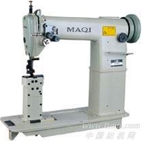 高头厚料缝纫机 LS820/LS820双针高头缝纫机采用连杆挑线,立式旋梭勾线,形成双线锁式线迹。上下轴采用螺旋伞齿轮传动。采用立柱式缝台及滚轮压脚(或一般压脚),低噪音、低振动。适用于皮鞋、运动鞋