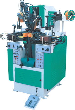 1.结帮前,中底及鞋面不必先行擦胶,不但节省人工,而且成形后加热永不脱胶,确保完美之形状。 2.全能束紧器及特别轨迹的扫刀,保证结帮后,鞋面均匀贴紧楦头,绝对不发角,增进美观,提高品质。 3.鞋头