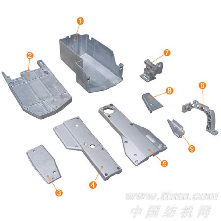 1 皮带罩 2 面板 3 侧盖 4 顶盖 5 压脚架 公司名称:江阴市兴港铝业有限公司简介: 江阴市兴港铝业有限公司(原江阴市兴港压铸厂)座落在中国明代著名旅游家、地理学家徐霞