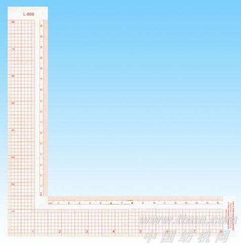 L808——公英制直角尺,透明红色线条,外侧英制8进,边缘16进。内侧是公制厘米格,边缘毫米格。1/2"x8"(17cm),1.2mm厚。线条藏于尺内,经久耐用。型号:L808价格:25.00元/片