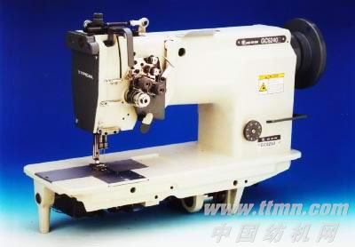 采用双直针,立式自动加油旋梭勾线,滑杆挑线,构成二行双线锁式线迹针杆采用机械式分离与联合;上下轴用滚珠轴承支承,机针与送布牙同步送料方式可有效地防止布料的起皱与滑移;旋扭式圆盘调节针距和械杆式倒顺送...