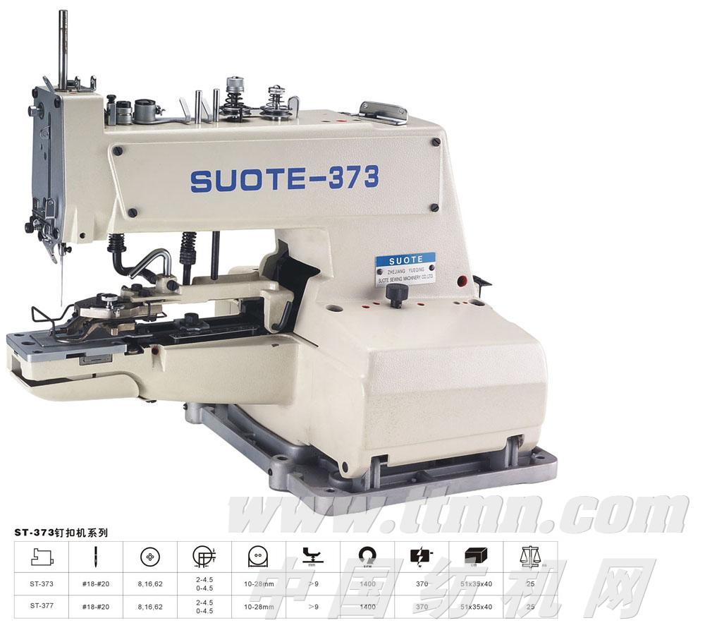 钉扣机 公司名称:乐清市所特缝制机械有限公司简介:浙江省乐清所特缝制机械有限公司,以专业化的技术与完善的优质服务系统,有着多年的生产经验开发制造制衣特种设备,其主要产品有:ST-780 ST-781