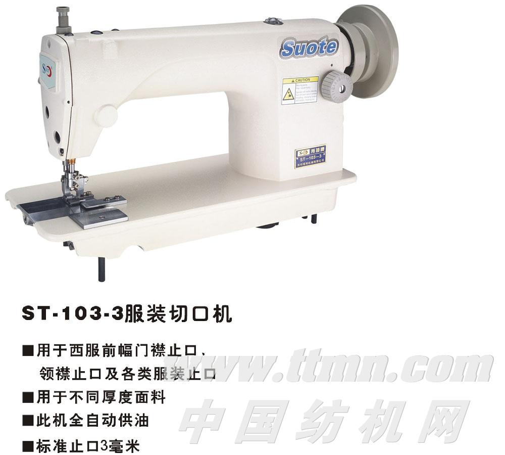 服装止口机 公司名称:乐清市所特缝制机械有限公司简介:浙江省乐清所特缝制机械有限公司,以专业化的技术与完善的优质服务系统,有着多年的生产经验开发制造制衣特种设备,其主要产品有:ST-780 ST-7