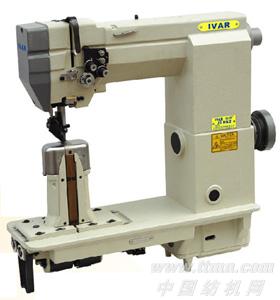 本机分单针及双针两种。采用连杆挑线,驱动式轮形压脚、轮形送布牙与机针同步送料、立式旋梭勾线,形式双线锁式线迹。上下轴用高精度同步齿形带传动;主要部位均采用滚针轴承或滚珠轴承;按钮式针距调节机构;立