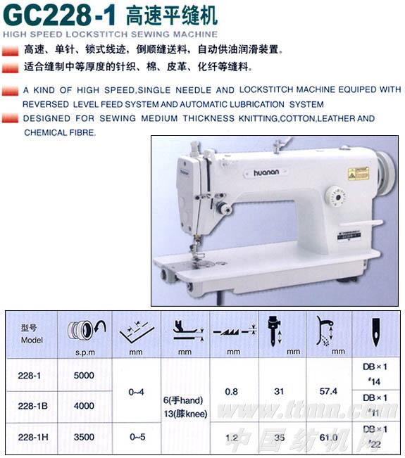 GC228-1高速平缝机 公司名称:广州市华南缝纫机进出口公司简介:广州市华南缝纫机进出口公司是广州摩托集团公司的核心企业之一,所生产的华南牌缝纫机是我国的名牌产品。企业改革重组后,拥有更先进的生