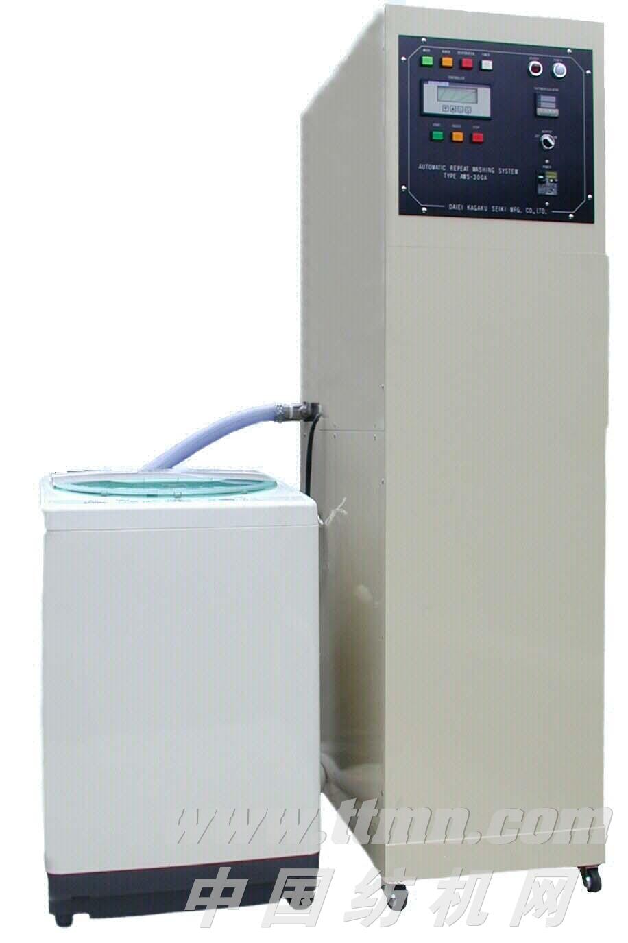 【概 要】 本机是为了对纤维制品的「变退色」「外观变化」「质量风格劣化」「缝制粗糙」「质地收缩」「涂层处理的耐久性」等进行试验,使用一般家庭洗衣机进行反复洗涤的装置。 从洗剂投入量开始到洗涤、漂洗、冲