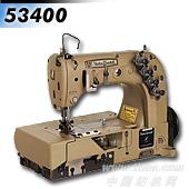是一台双针双重环缝四点曲折缝缝纫机。 使用于缝制各种女士、孩子穿的内衣、衬衫、裙子、针织服等的齿缝、拼缝。 可在53400K这一台机器上进行单双倍齿缝、单双倍拼缝,以及曲折缝。将双倍齿缝单倍齿缝只