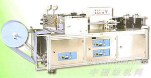 EG-16为生产不织布平面口罩之後段机器。需一名操作员将口罩本体遂片置於此机之输送治具上,再由本机自动地以超音波熔接松紧带及不织布边带,进而完成耳带式口罩成品,并将口罩成品计数且堆叠於输送带上。商品规