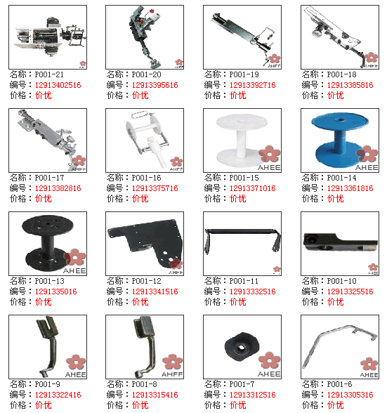 帽绣装置零部件 公司名称:浙江爱华绣花机配件有限公司简介:浙江爱华绣花配件有限公司 本公司专业生产、直销下列产品: 1、进口、国产多头电脑绣花机零件(日本田岛、百灵达、北京、青岛、