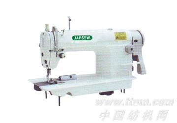 用途: 适用于缝制各种服装、衬杉、针织、牛仔等缝料。 详细描述: 该机采用连杆挑线,旋梭钩线,缝制双线锁式线迹,倒顺送料,全自动倒吸油泵,螺旋锥齿轮传动,主要零部件采用高级合金钢制成,安