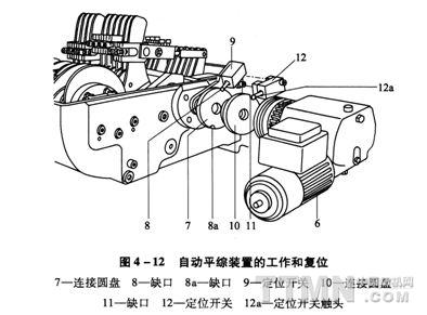 二、自动平综装置 自动平综装置适用于凸轮开口机构,它是由驱动电动机和减速齿轮箱组成。当经纱或纬纱断头后,自动平综装置可使综框调到同一高度。其操作是用电子电气控制箱的插件(FHl)来完成的。如图4—11所示。