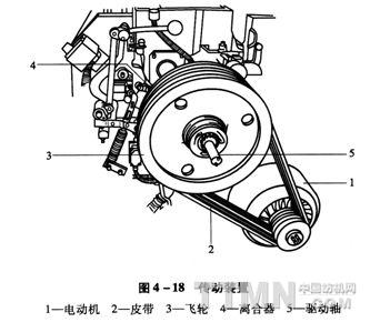 织机的传动装置是由电动机、V形皮带盘、离合器机构、开关机构、制动机构及防逆转机构等组成,如图4一18所示。织机由电动机1驱动。电动机1通过V形皮带2传动两只飞轮3。织机啮合时,两只飞轮3压向插在中间的离合器4,电动机的动力传递到驱动轴5上。