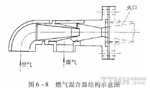 (2)气体混合装置:燃气混合器的结构如图6—8所示。可燃性气体和空气只有在适当的