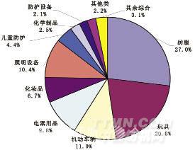 在纺服类产品中,被通报的产品主要集中在童装。2011年共358起,占全部纺服类产品通报总数85.65%。其中对华纺服类通报中,涉及童装的有164起,同比减少31.38%,占纺服类产品通报总数的84.54%。