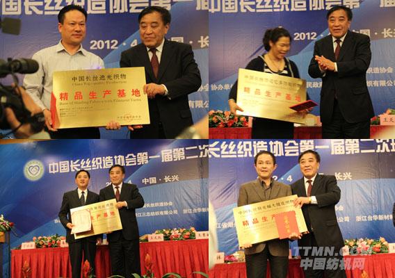 大会举行了中国化纤长丝面料精品生产基地授牌仪式,浙江三志纺织有限公司、浙江台华新材料股份有限公司、盐城悦弘织造有限公司、恒力集团获得该项殊荣。随后,会上公布了中国长丝织造行业优秀统计工作者名单,并对优秀工作者进行表彰。
