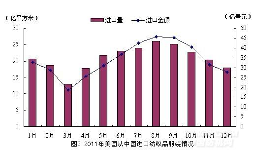 2011年以来,世界经济增长放缓,国际贸易增速回落,各类风险明显增多,世界经济复苏的不稳定性和不确定性上升。1~10月,美国从全球进口棉制品数量同比下降12.27%,增速环比上半年回落4.05个百分点,其中从中国进口棉制品数量同比下降17.56%,增速环比上半年回落2.4个百分点。