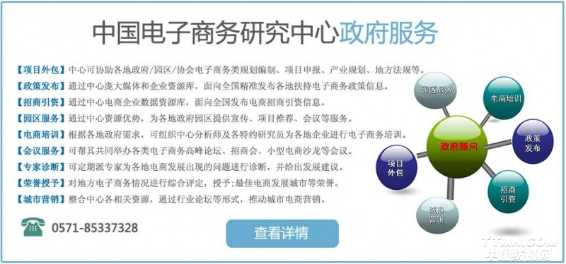 据悉,在编制电子商务发展意见和规划中,主要工作包括:制定总体工作方案、召开调研企业座谈会、实地调研代表性传统企业及电商企业、编制撰写等。中心政府事务部为全国各地政府提供的服务业务包括:项目外包,为各地政府电子商务类规划编制、项目申报、产业规划、地方法规等。其他服务还包括:政策发布、招商引资、电商培训、会议服务、专家诊断、荣誉授予等。