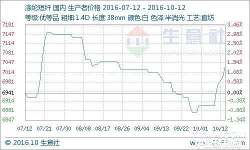然而对于涤纶行业本月却呈现小幅下跌态势。上游原油价格虽然在月底连涨,但是PTA方面装置重启供应增加,开工率攀升至69.56%附近,较月初59.09%上调了10.47%,成本端支撑有限。下游方面借助G20峰会这股东风,提前透支了下游需求,“金九”虽然来了,但并未出现集中备货现象。上下游都不给力,即时月底召开涤纶行业会议对于行情略有提振外,整体表现欠佳。