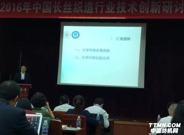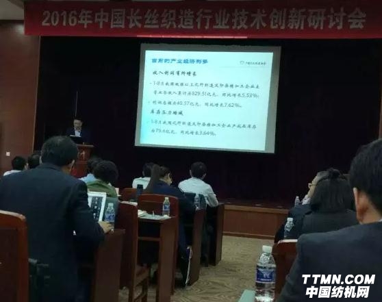 随后,中国长丝织造协会会长王加毅就“2016年中国长丝织造产业技术进步与创新”做主题报告。