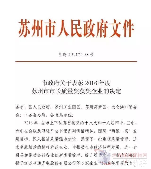 4月11日,在全市市场监管暨食品安全工作会议上,当场对苏州市市长质量奖、苏州市质量管理优秀奖获奖企业进行了通报表彰!