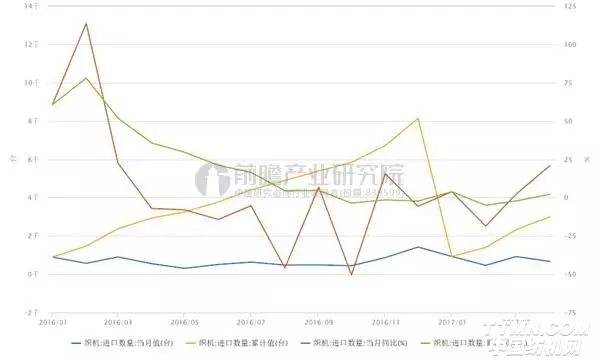 以下为2016年1月至2017年4月我国织机进口数量统计: