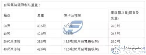 台湾以立法形式对进出口集装箱重量进行限定,自7月1日起执行。为避免拖车业者、船方及货方间产生争议,需严格遵守执行货柜限装载之限重。
