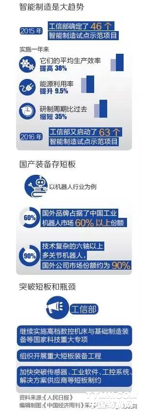 为突破短板和瓶颈,工信部将以高端装备、短板装备和智能装备为切入点,狠抓关键核心技术攻关。一是继续实施高档数控机床与基础制造装备等国家科技重大专项,深入实施增强制造业核心竞争力三年行动计划,启动实施智能制造与机器人等科技创新重大项目;二是组织开展重大短板装备工程,集中支持重点领域创新发展和传统产业改造提升所急需装备的工程化、产业化项目;三是加快突破传感器、工业软件、工控系统、解决方案供应商等短板制约,实现一批智能装备和系统的工程化、产业化应用。