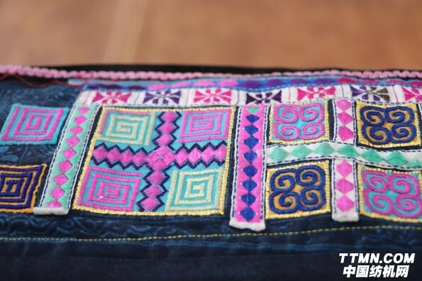 据了解,兰女士的母亲还住在贵州老家,她用苗族语言对着镜头表达对其的想念与祝福。同时,兰女士向实践团成员展示了一套自己做的的苗族服饰。“这是我18岁时自己亲手做的,这套衣服的图案是结婚后妇女独属的。”苗族有着上千年的历史,由古以来,苗族一直留存着丰富、独特的民族习俗。兰女士同时还向团队成员介绍贵州当地特色民族节日,如赶秋节(立秋)、八月十五、吃新节(稻谷、玉米成熟时)等节日。