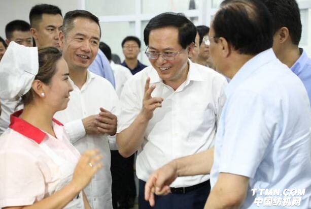 8月6日下午,浙江省委书记车俊,在新疆维吾尔自治区主席雪克来提·扎克尔等陪同下,到华孚色纺阿克苏工业园,深入生产车间视察。