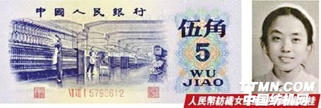 中国机具纺织起源于五千年前新石器时期的纺轮和腰机。西周时期具有传统性能的简单缫车、纺车、织机相继出现,汉代广泛使用提花机、斜织机,唐以后中国纺织机日趋完善,大大促进了纺织业的发展。在发行于1974年1月5日的藏品《三版凸版伍角(捆)》中,便将“纺织”引入其中《三版凸版伍角(捆)》的正面主景是一个纺织车间。该纺织车间的原型是六七年代的中国纺织科学研究院棉纺分厂。画面中间推落纱机的女工叫做蒋定桂,其父是中国首任纺织部长、十九路军淞沪抗战名将蒋光鼐。蒋光鼐逝世后,蒋定桂为照顾母亲,写信请求周恩来安排她去纺织厂当女工。当时人民币的设计团队去到纺织厂实地拍摄,才有了5角券上纺织女工的形象。