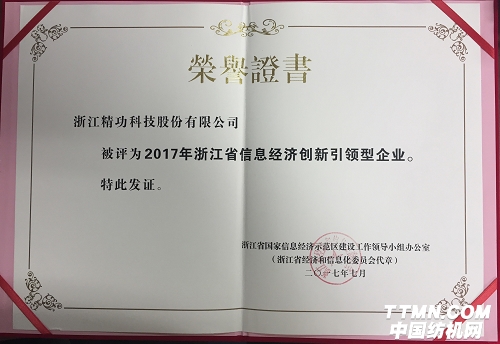 经企业自主申报,地方经信部门推荐,浙江省国家信息经济示范区建设工作领导小组评审,近日,2017年浙江省信息经济重点企业名单发布,浙江精功科技股份有限公司成功获评“2017年浙江省信息经济创新引领型企业”,成为柯桥区唯一获此荣誉的企业。
