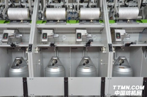 该机引人注目的亮点在于:高效率:采用独特的单锭位电锭传动技术,最高实际加捻锭速可达9000转/分;大卷装:最大可达400mm的成品卷装;气动纱架的应用使原丝上纱更容易,且减轻了劳动强度;新型张力控制装置保证了纱线张力的一致性和稳定性;节能型锭罐配套新开发应用的节能锭子电机加捻组件,减少了能耗;直捻、倍捻通用:通过简单的部件更换,易于实现直捻和倍捻的工艺转换;智能化的控制系统:以太网远程诊断控制实现机台间的联网及诊断控制,节约人力,手持智能终端实现无巡回多台“定向挡车”。