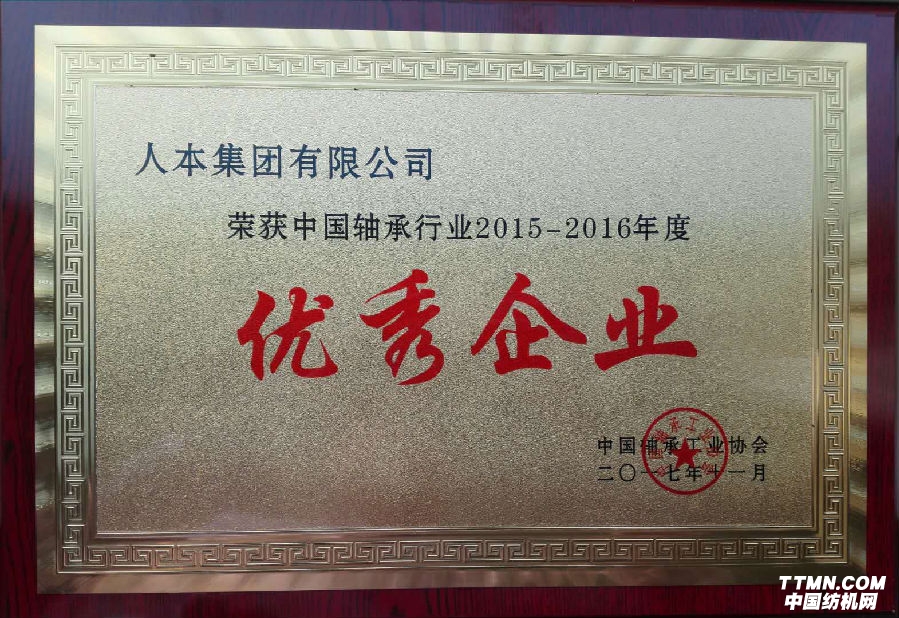 11月16日,中国轴承工业协会在辽宁省大连市召开“中国轴承行业企业管理工作会议”。会上对2015-2016年度先 进集团和先进个人进行了表彰,人本集团荣获中国轴承行业2015-2016年度管理创新“优秀企业”荣誉称号,人本集团总裁胡龙流评选为中国轴承行业2015-2016年度“优秀企业家”荣誉称号。