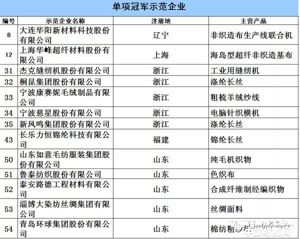 近日,工业和信息化部发布《第二批全国制造业单项冠军企业和单项冠军产品名单公示》。纺织行业有16家企业上榜,14家入选单项冠军企业,2家企业产品入选单项冠军产品。