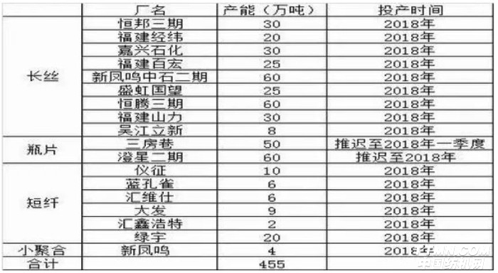 455万吨!2018年中国聚酯产能进入新投产高峰期