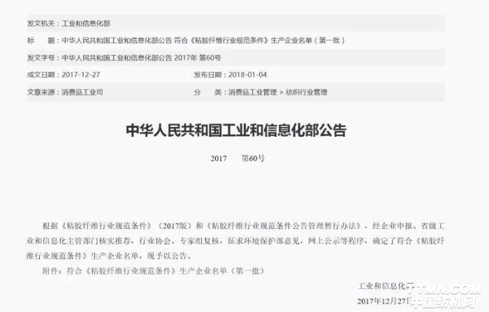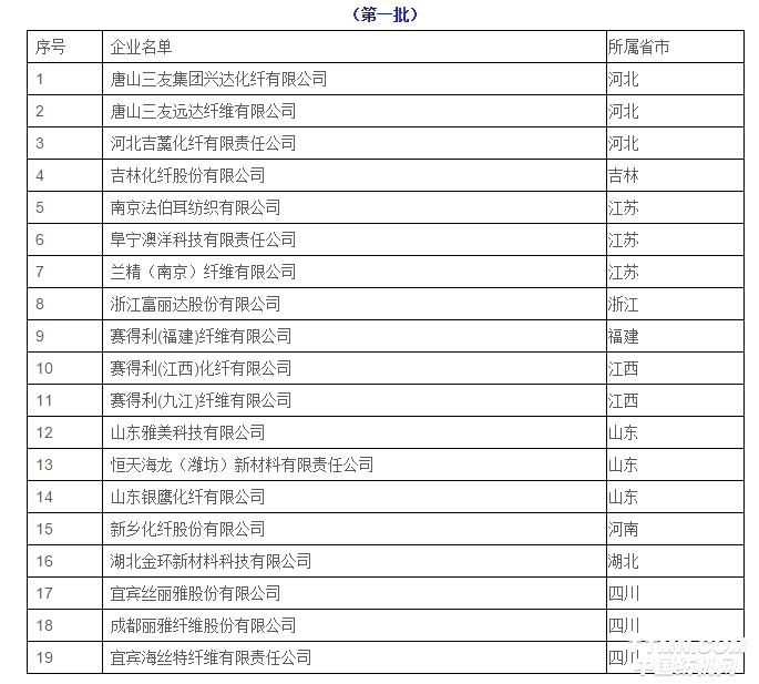 1月4日,工信部正式发布了符合《粘胶纤维行业规范条件》生产企业名单,具体如下: