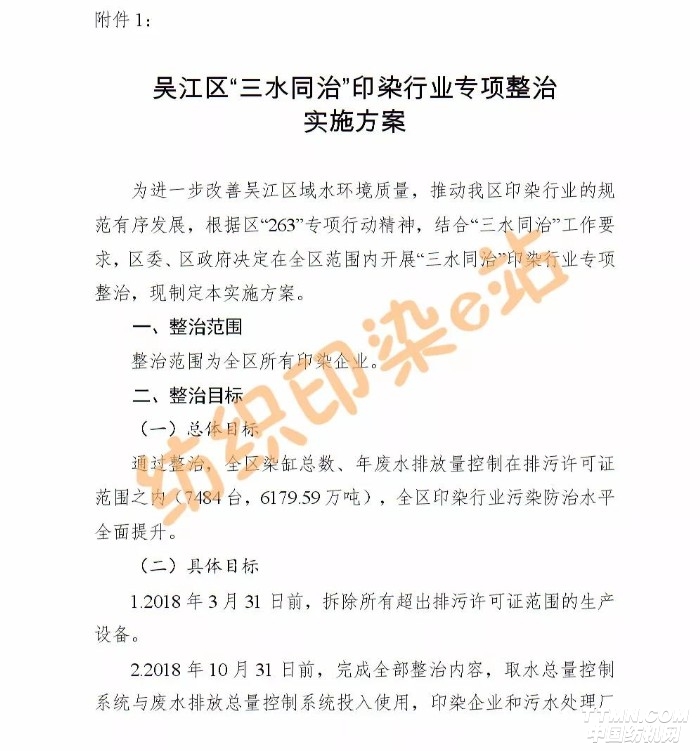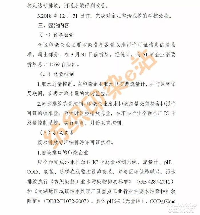 1、所有印染企业都要在3月31日前拆除所有超出排污许可证范围的生产设备;