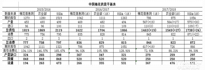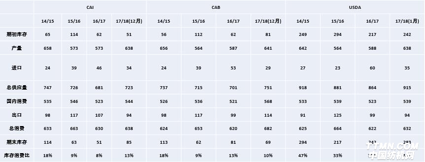 监测系统12月调查结果显示,2018年中国棉花意向种植面积4778.4万亩,同比增加15.4万亩,增幅0.3%。其中黄河流域意向植棉面积871.7万亩,同比下降3.1%,长江中下游意向植棉面积583.7万亩,同比下降4.7%,西北内陆意向植棉面积3273.6万亩,同比增加2.3%。由于补贴政策倾斜、棉农收益减少、加工收购不积极、集约化管理程度低、较其它作物费时等原因,内地主产省份植棉意向大都减少。预计当前价格下内地棉花种植面积不会有太大增幅空间。新疆受水资源限制,虽然收益较高,但面积没法大面积增加,加之2017-2019年目标价格补贴新疆产量上限为550万吨,新疆地区棉花产量增幅有限。内地棉花产量保持100万吨+新疆直补上限550万吨=650万吨,国内每年的产需缺口也依然在200-300万吨。在国内棉花产需缺口200-300万吨左右的刚性需求下,再加上对于国储库中新疆棉数量和质量的担忧,18/19国储库容量将处于安全边际。