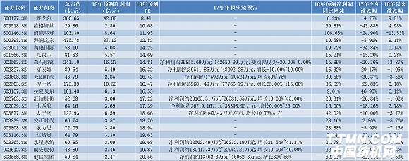 从已经公布2017年业绩预告的33家上市公司情况来看,24家实现同比增长。不仅如此,从目前券商一致性预测的2018年净利润同比增速来看,整个服装家纺板块的中位数达到22.17%,也进一步证实了行业的景气程度向好。