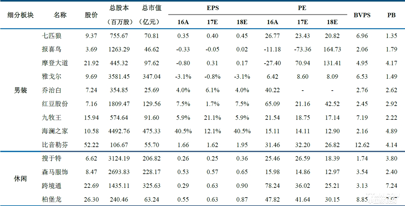 纺织服装行业龙头公司估值处于低位 零售加速整合服装白马抬头