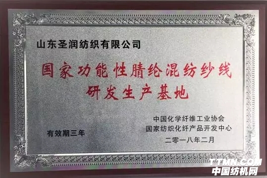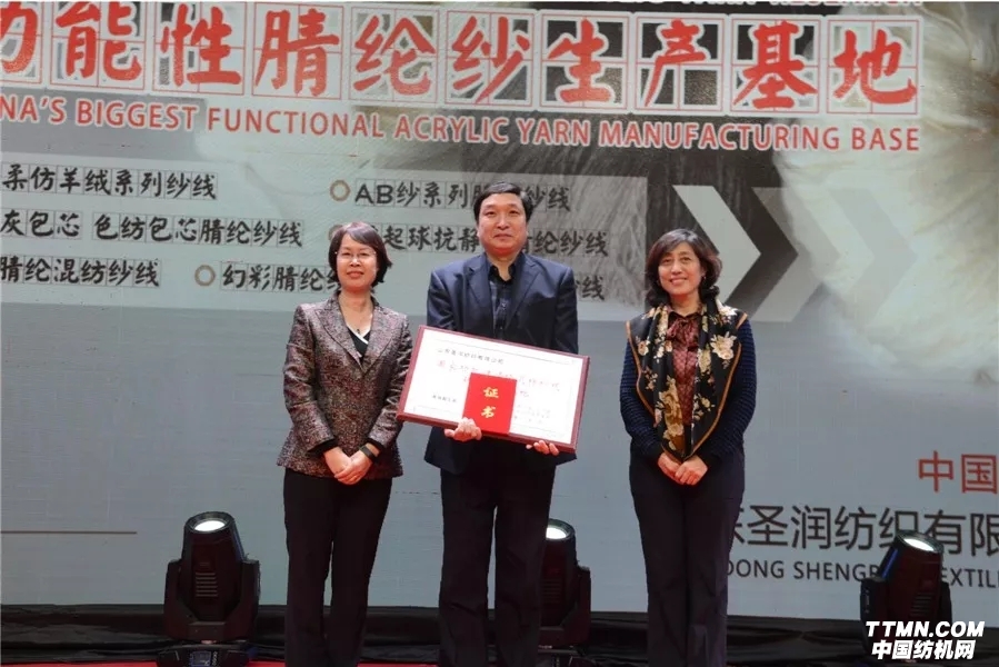 2018年2月5日,山东圣润纺织有限公司2018迎新年会暨中国化学纤维工业协会、国家纺织化纤产品开发中心与山东圣润纺织有限公司合作共建“国家功能性腈纶混纺纱线研发生产基地”授牌仪式在山东嘉祥隆重举行。