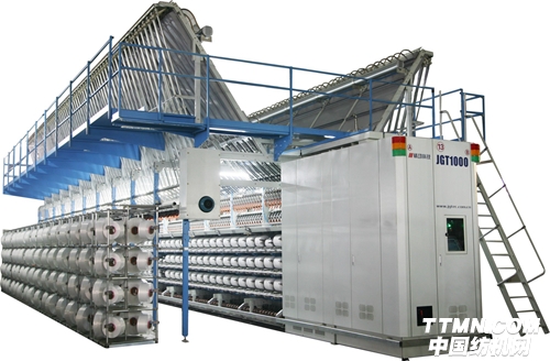 JGT1000X涤氨一体假捻变形机是一种将涤纶预取向丝通过加热变形加工成具有高弹性能的弹力丝,同时在机器上将氨纶丝与涤纶弹力丝复合,配以网络喷嘴,使涤纶氨纶空包一步实现的设备,可加工不同品种和纤度的涤纶氨纶空包弹力丝。该机通过设备A/B两面驱动的单独控制,工艺参数可分别设置;各锭位氨纶送丝采用单个电机驱动,实现单锭精确送丝;该设备还设计了监控管理模块,监控生产情况,提高了管理水平。
