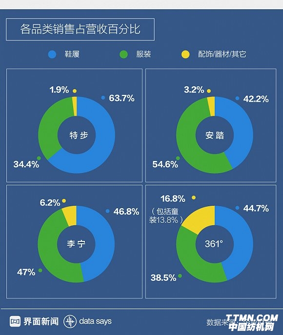 在跑鞋为主的专业运动战略背景下,特步的鞋类销售占比超过60%。