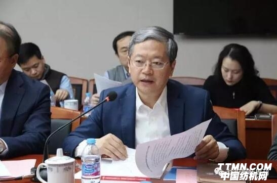 夏令敏在会上通报了2017年全国纺织工业经济运行情况和2018年主要行业工作。