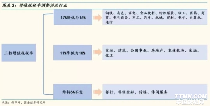 若增值税率后续下降至13%,有望推动制造业企业净利润总额弹升44.8%,其中上、中、下游分别弹升62.8%、44.9%、35.1%,有色冶炼、化学纤维、铁路船舶三个行业利润弹升幅度达到115.6%、74.0%、70.1%。